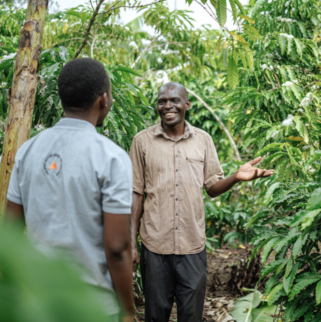 Mohammed is 52, a dedicated coffee farmer, and the head of a household of five. His farm is larger than average, and coffee has already allowed his family to build a concrete house — a significant asset in the community.