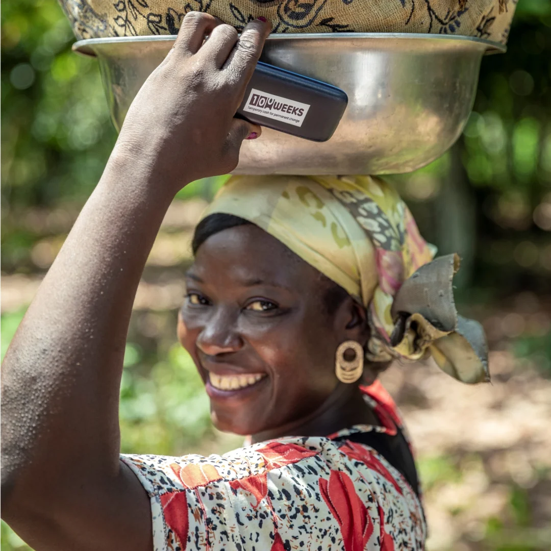 100WEEKS is an organization that implements a “cash plus program” that gives women living in poverty the means to build a more secure future. Over 100 weeks, participants receive weekly mobile-money transfers of 8 USD and take part in practical trainings on financial literacy, entrepreneurship, and household decision-making. They also join Village Savings & Loan Associations (VSLAs), creating long-term savings habits and access to small, strategic investments (see 100WEEKS Theory of Change below).