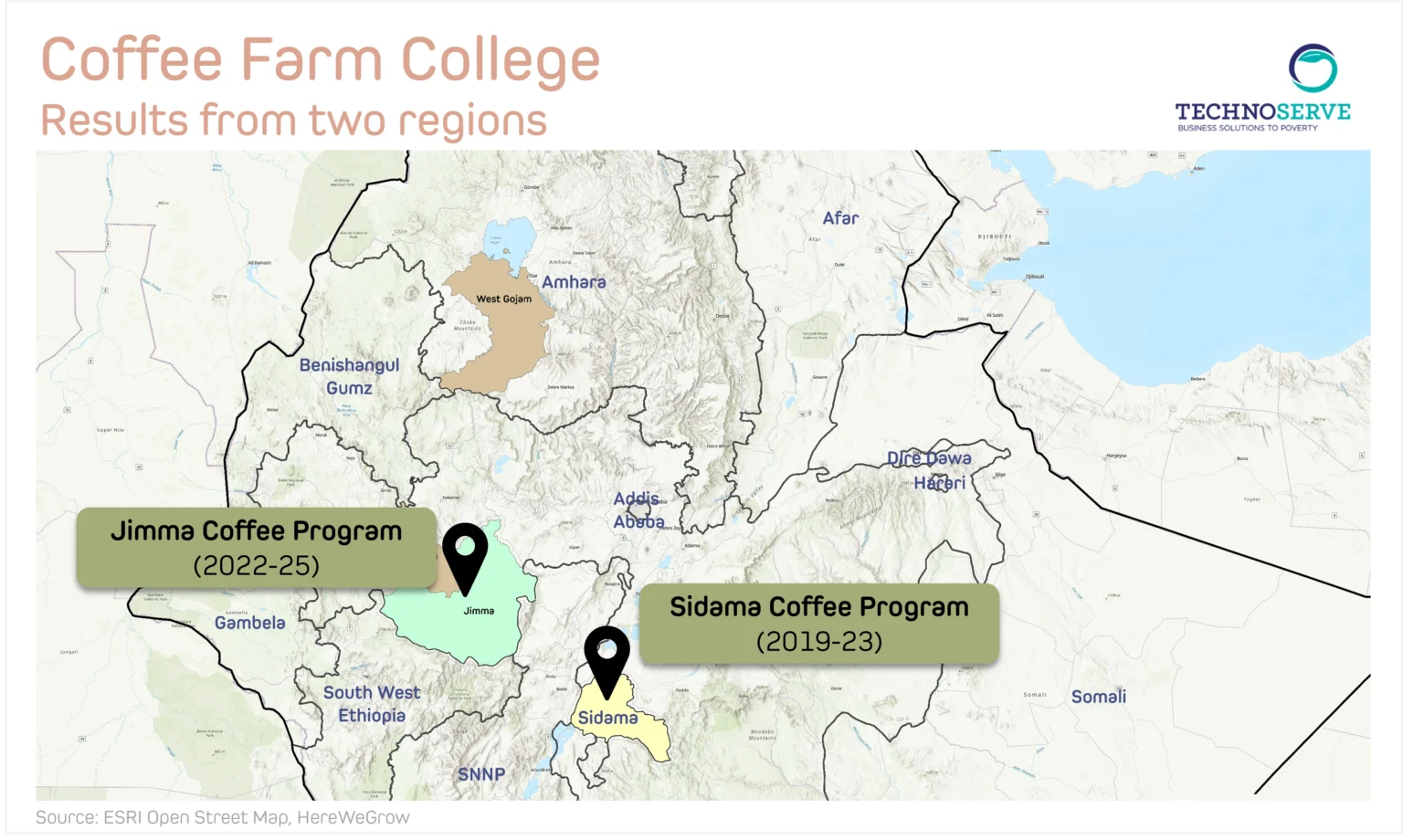 When we began supporting smallholder coffee farmers in Sidama and Jimma – two coffee growing regions in Ethiopia – both programs were built on the same approach: TechnoServe’s Coffee Farm College, a structured two-year training program on coffee Good Agricultural Practices (GAPs).